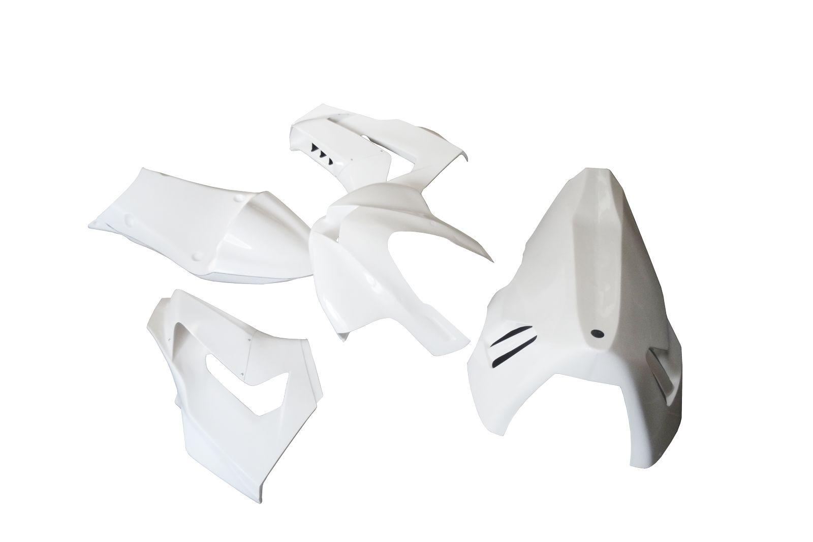Complete with quick releases contains:upper part,left side lower with wings,right side lower with wings,lower part,solo seat racing,10 quick releases mounted on fairings