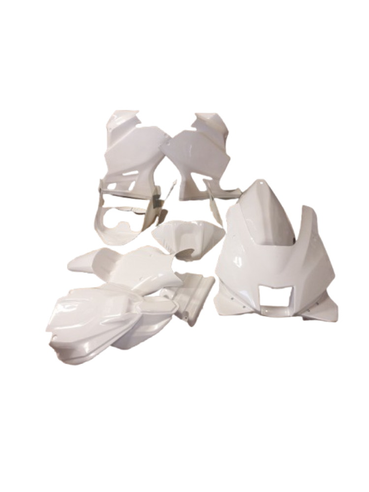 Complete without quick releases contains:upper part with wings,left side lower,right side lower,lower part,solo seat racing complete from 3 parts/upper part,lower part,reinforcement/,radiator cover,tank cover original shape